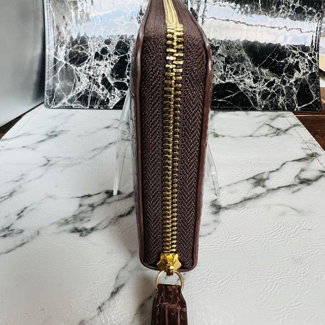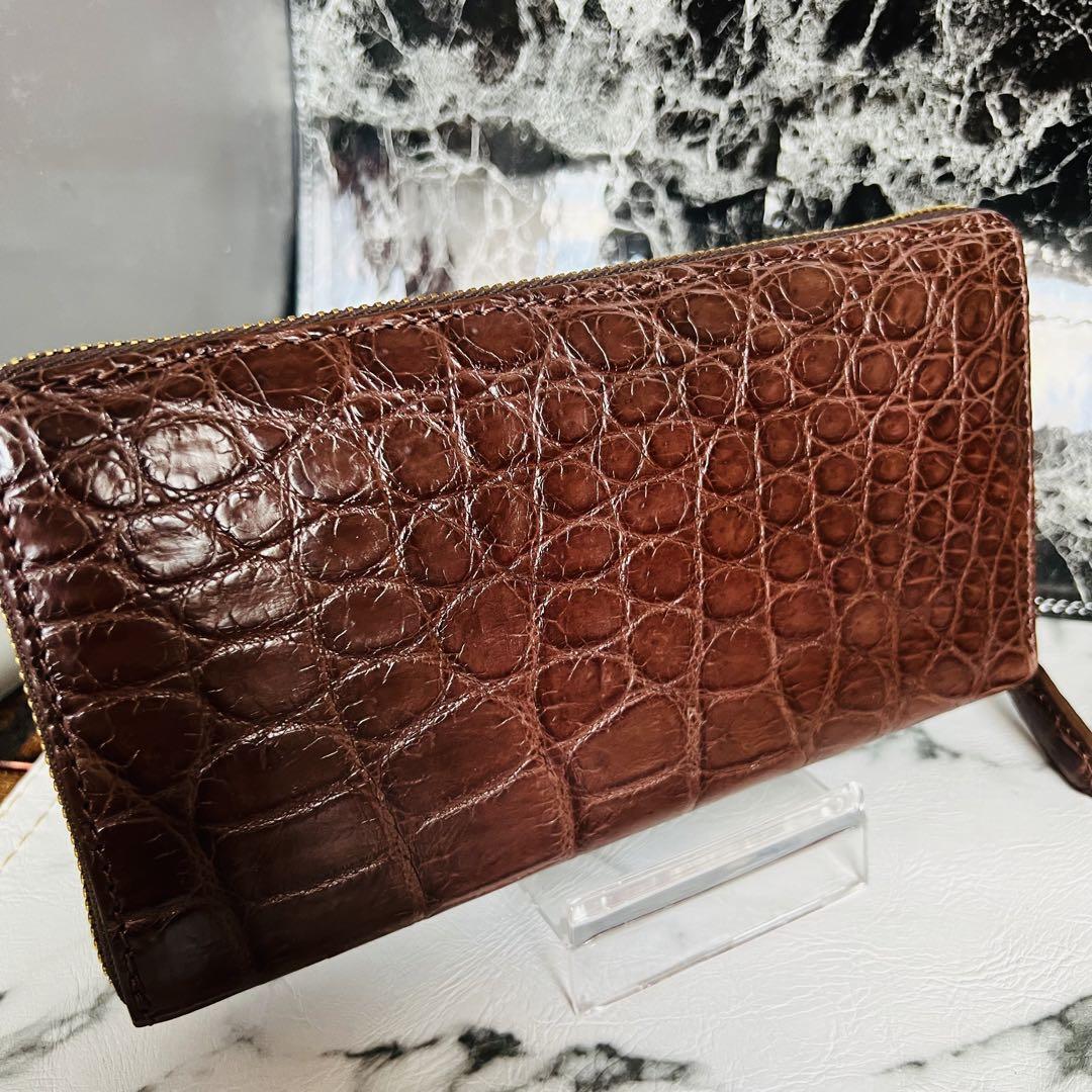 新品 クロコダイル長財布 クロコ財布 ワニ革 ブラウン 茶色 本革
