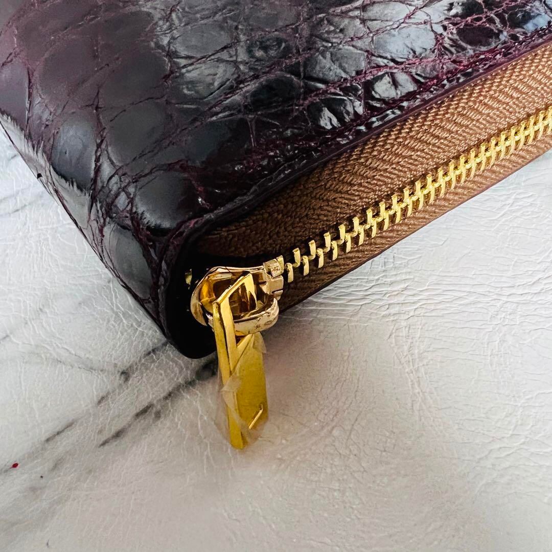 新品 クロコダイル長財布 クロコ財布 ワニ革 チョコレートブラウン 茶色 本革ゴールドファスナー