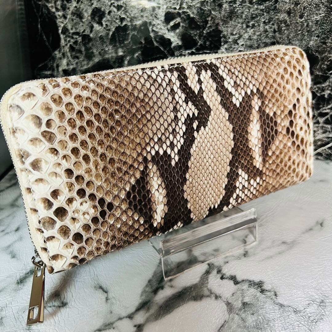 新品 パイソン長財布 蛇革 へび革 ヘビ革 ブラウン 本革 メンズ おしゃれ レディース