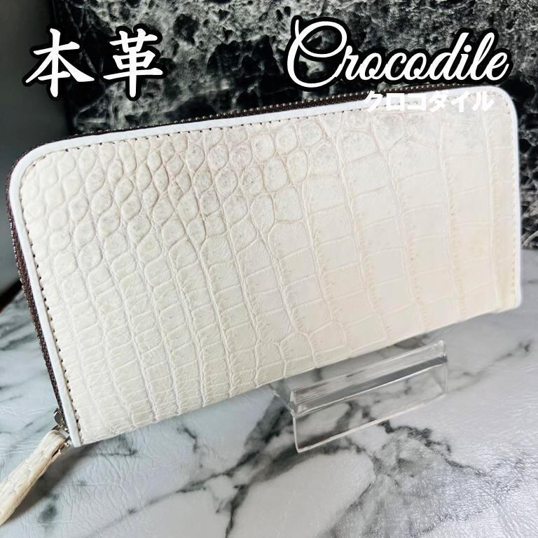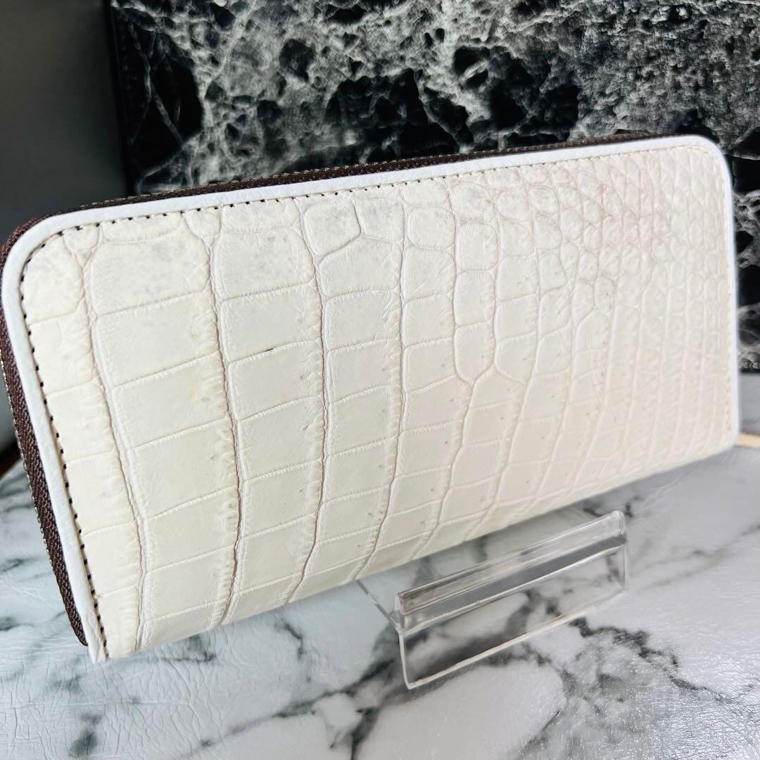 新品 クロコダイル長財布 クロコ財布 ワニ革 ヒマラヤカラー ラウンドファスナー